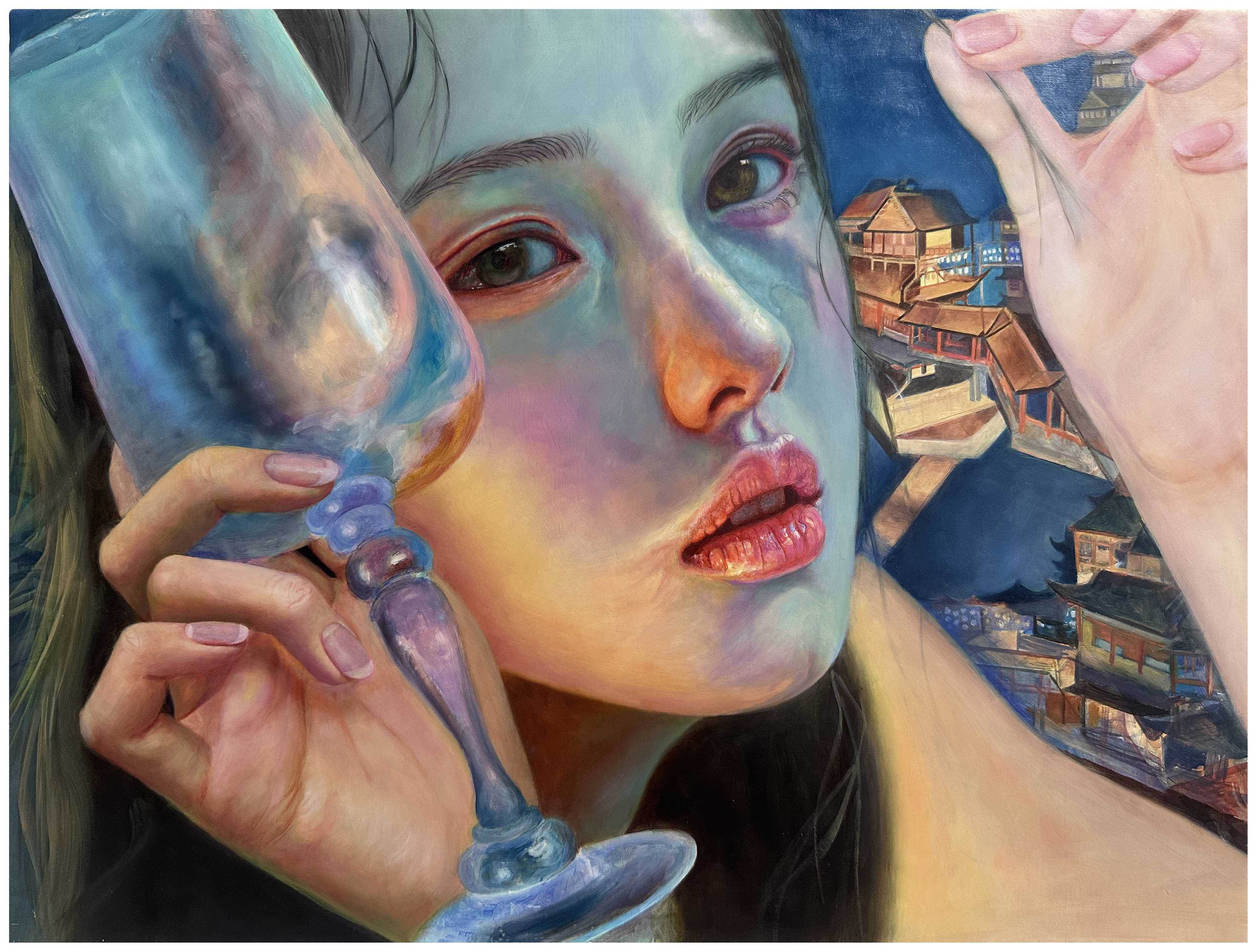 创作札记:《新人类》系列是我创作的一组尺寸为9×6.4cm的小幅油画作品。作为艺术表达的实验性尝试,这些画作以极为精细的笔触呈现具象人物,探索AI时代人类与科技融合的主题,表现了人类与技术装置的紧密关联,且创作素材亦是通过人工智能软件Midjourney生成。我希望通过这些画作引起观者对于人类自身与科技之间共生关系的反思。