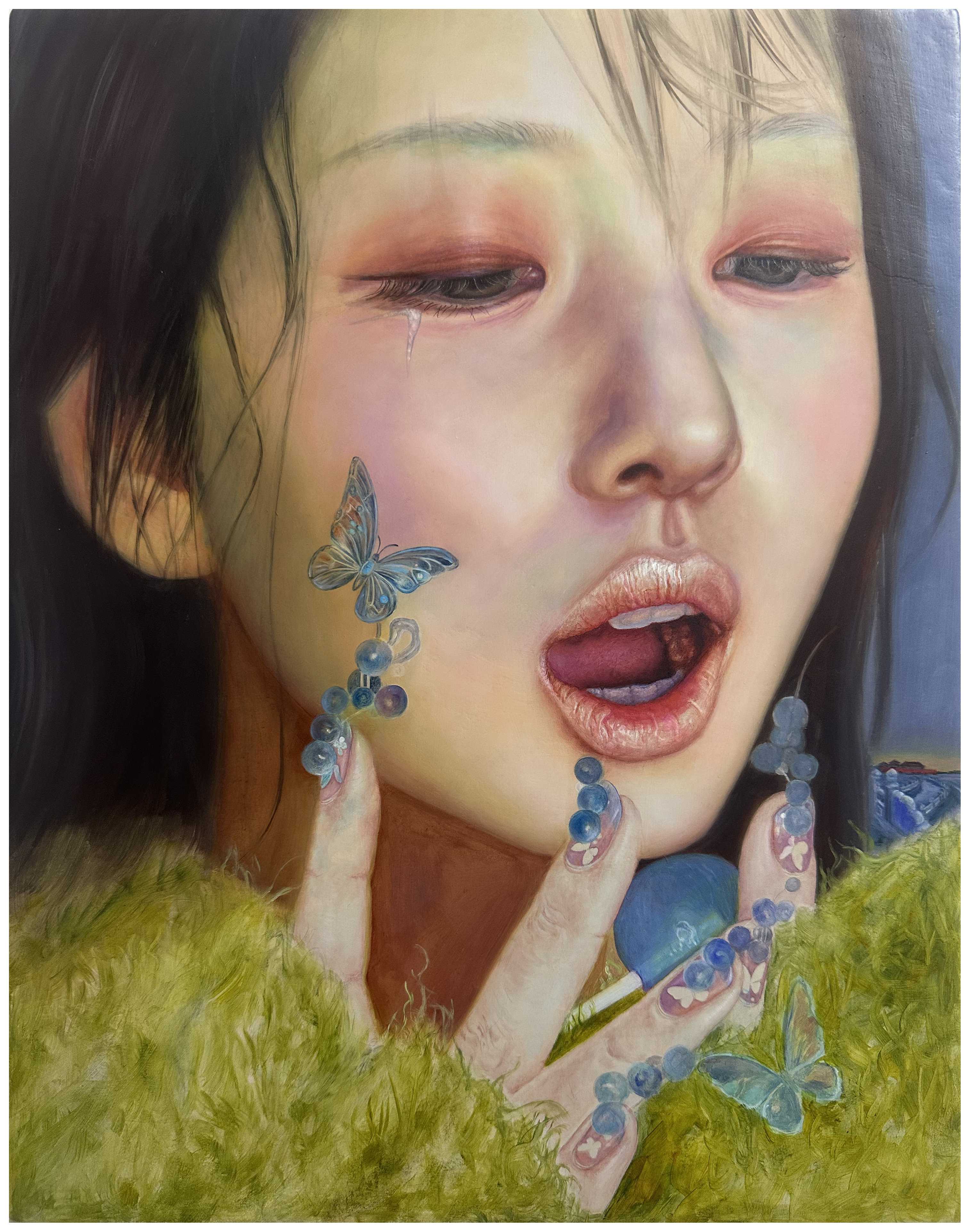 《新人类》系列同时也是我对绘画媒材可能性的实验,以传统的具象写实技法,融入了对未来图像美学的想象与思考。