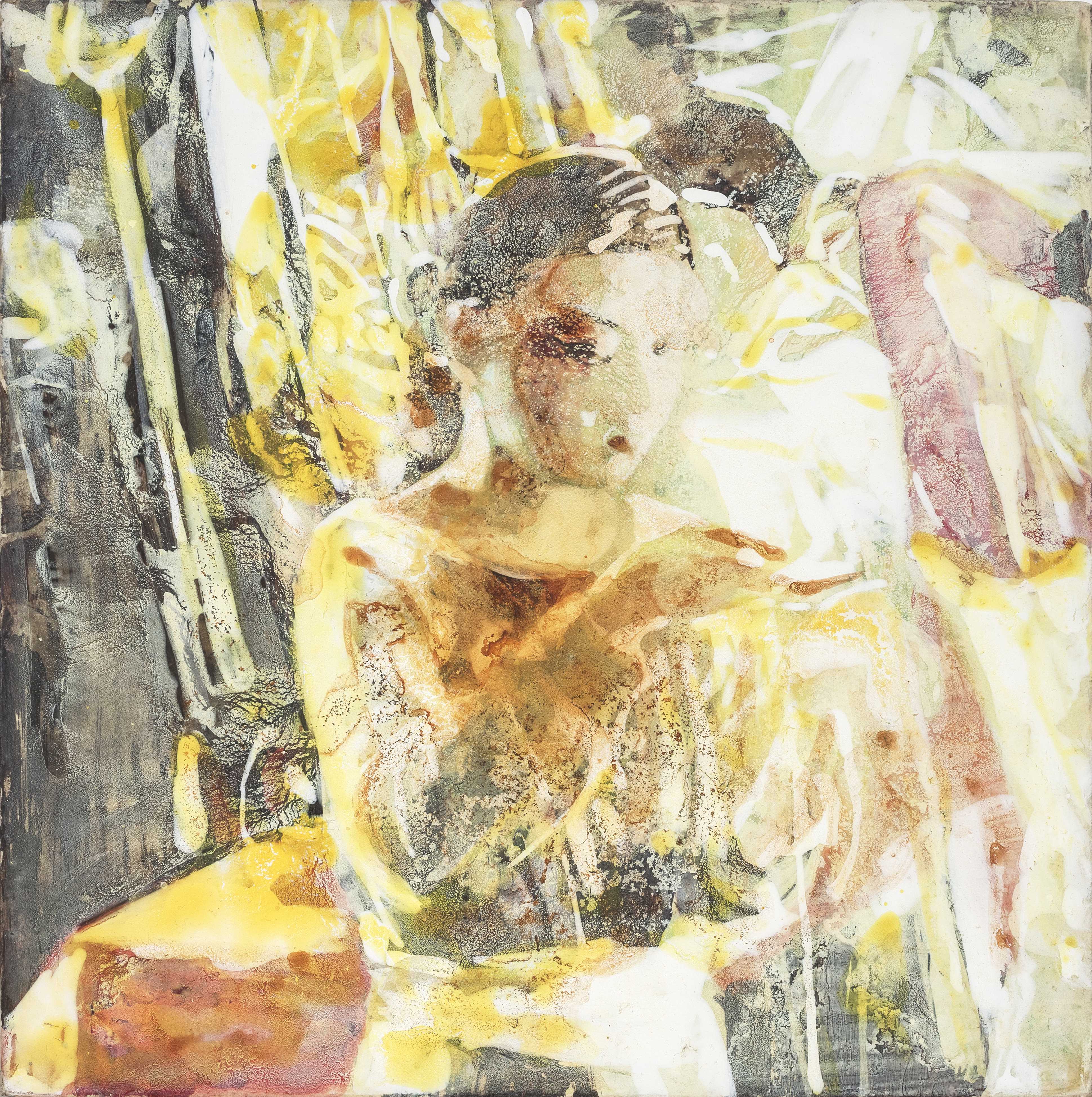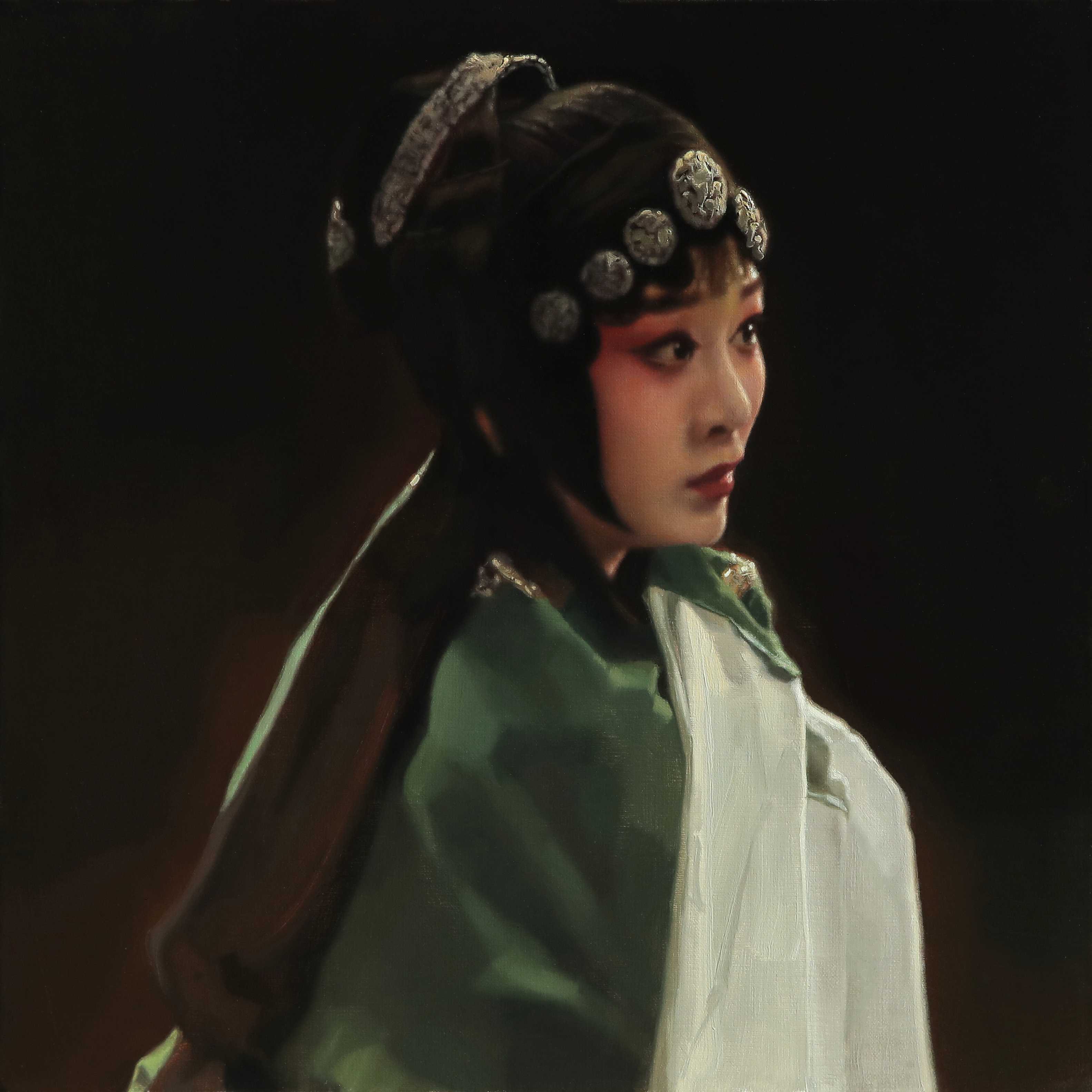 创作札记:在创作“后台随笔”系列作品时,为了表现出戏剧演员独特韵味,我将坦培拉技法融入创作过程中,并根据自身表达的需求灵活运用,使坦培拉写实技法中又透着写意的空灵。通过笔触晕染与色层多次罩染,似有若无地营造出那种温婉含蓄的情境,将戏剧演员的灵韵,隐匿于材料肌理中,呈现出形色交融材质感与层次感,表现戏曲文化那含蓄不尽的美。